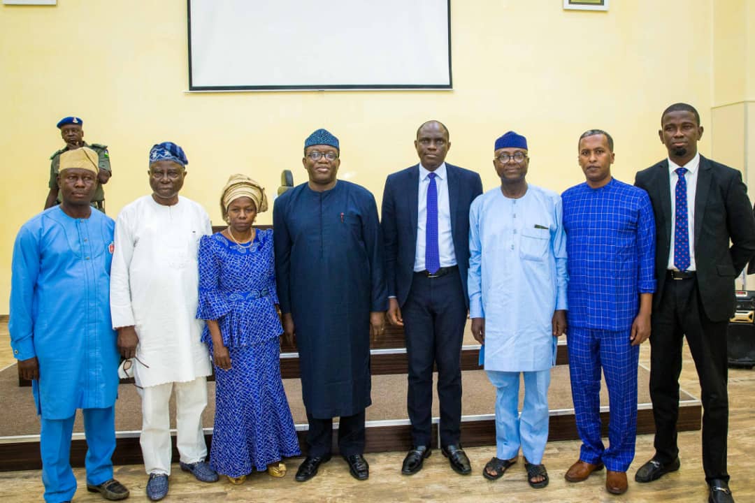 - Governor Kayode Fayemi, Deputy Governor Otunba Bisi Egbeyemi and Ekiti State House of Assembly Speaker, Funminiyi Afuye posed with the members of the governing council of College of Agriculture and Technology, Isan Ekiti, during the council’s inauguration on Friday. R-L: Dr. Tope Aroge; Nuradin Osman; Funminiyi Afuye, Babajide Arowosafe (Chairman Governing Council), Governor Kayode Fayemi, Prof. Simi Odeyinka; Otunba Bisi Egbeyemi and Ayo Aroge